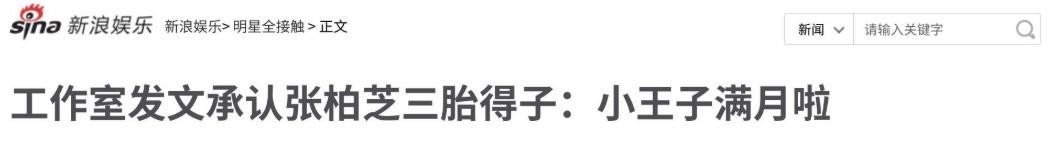 新浪娱乐|工作室发文承认张柏芝三胎得子:小王子满月啦